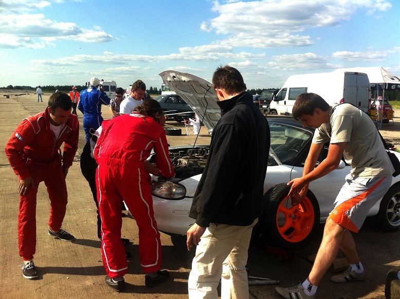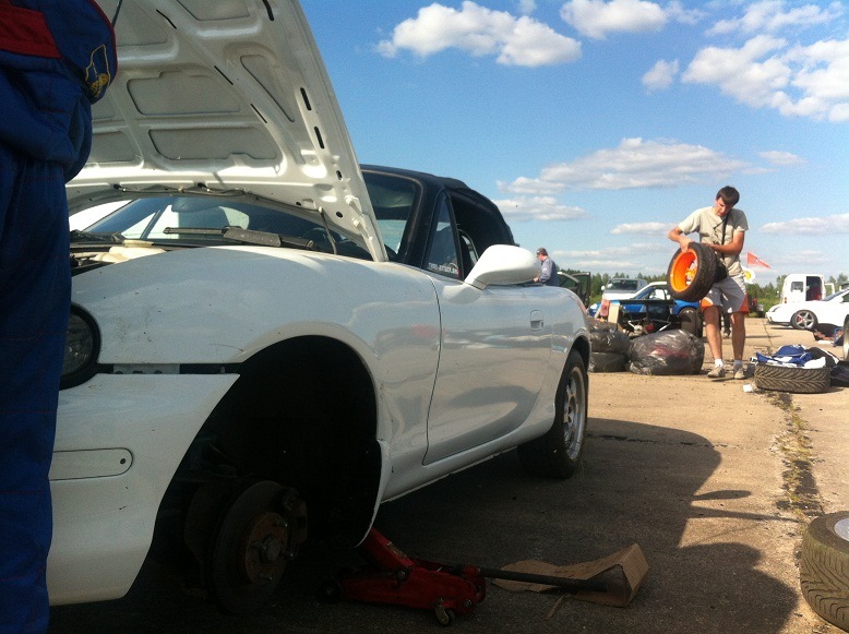 Машина выехала сама, заменили колеса на 595rsr, повесили на место бампер, руль остался ровный и снова на тренировку, пару раз еще успел проехать. Спасибо ребятам из команды за помощь в реабилитации машины.