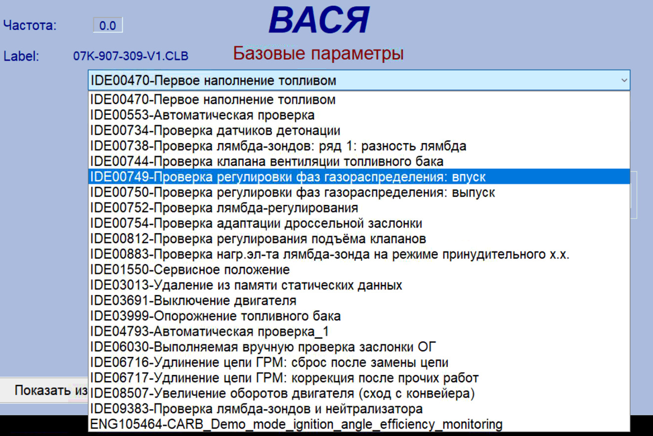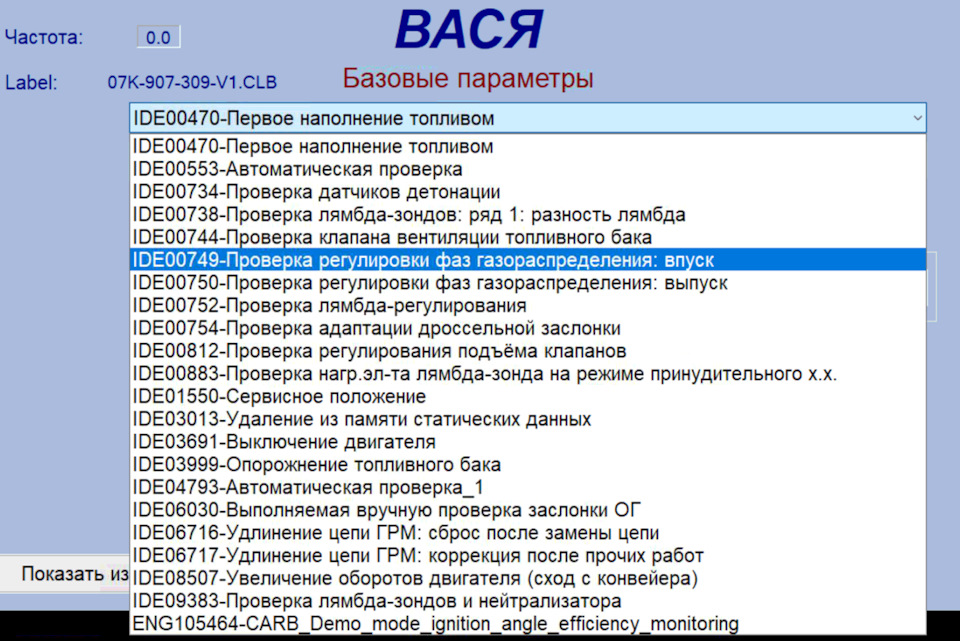Двигатель запущен, температура ОЖ=90°С. Заходим в блок электроники двигателя, в базовые параметры и запускаем