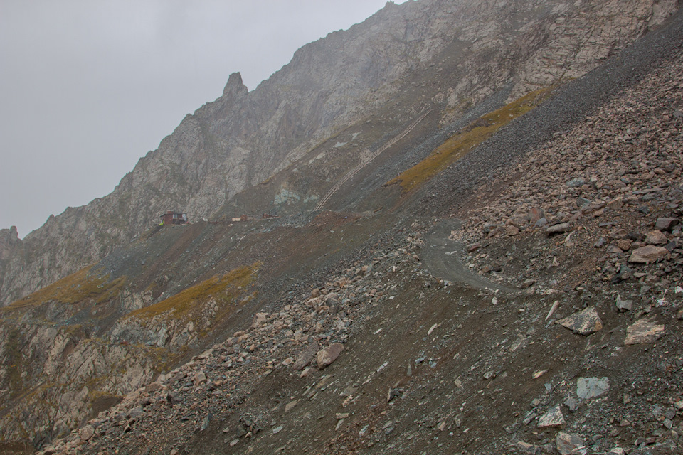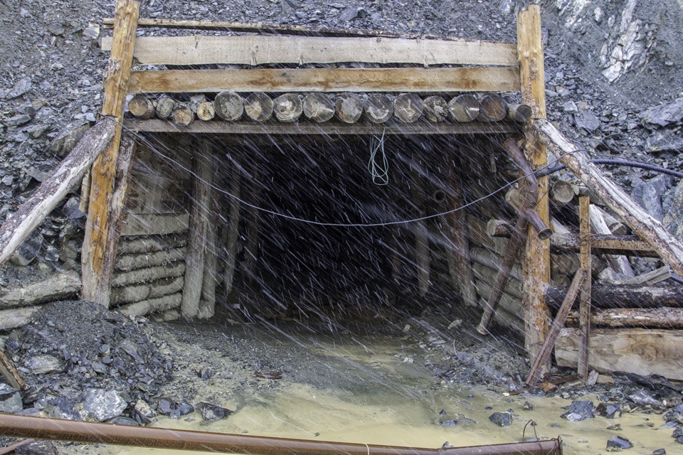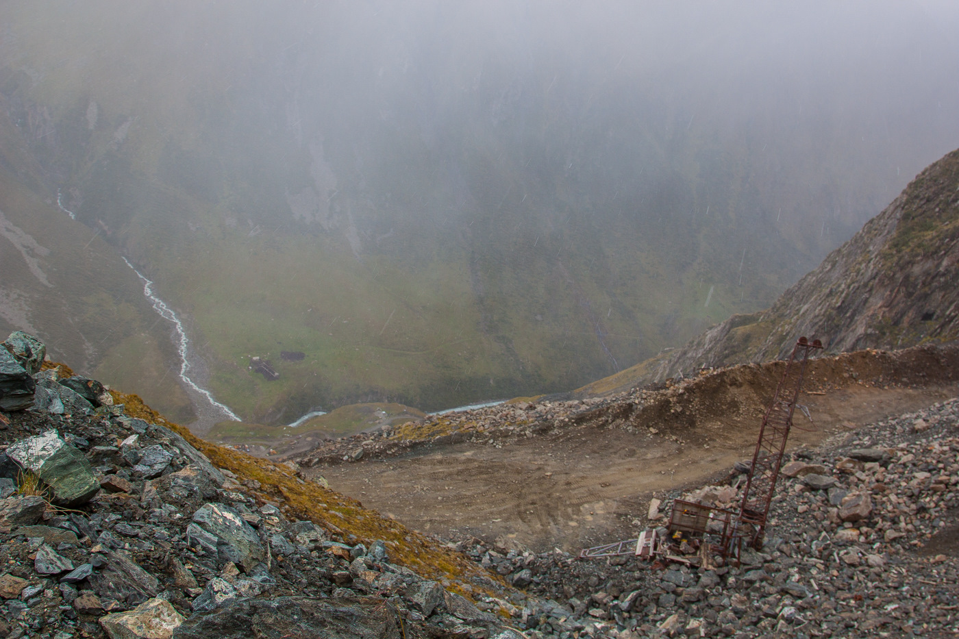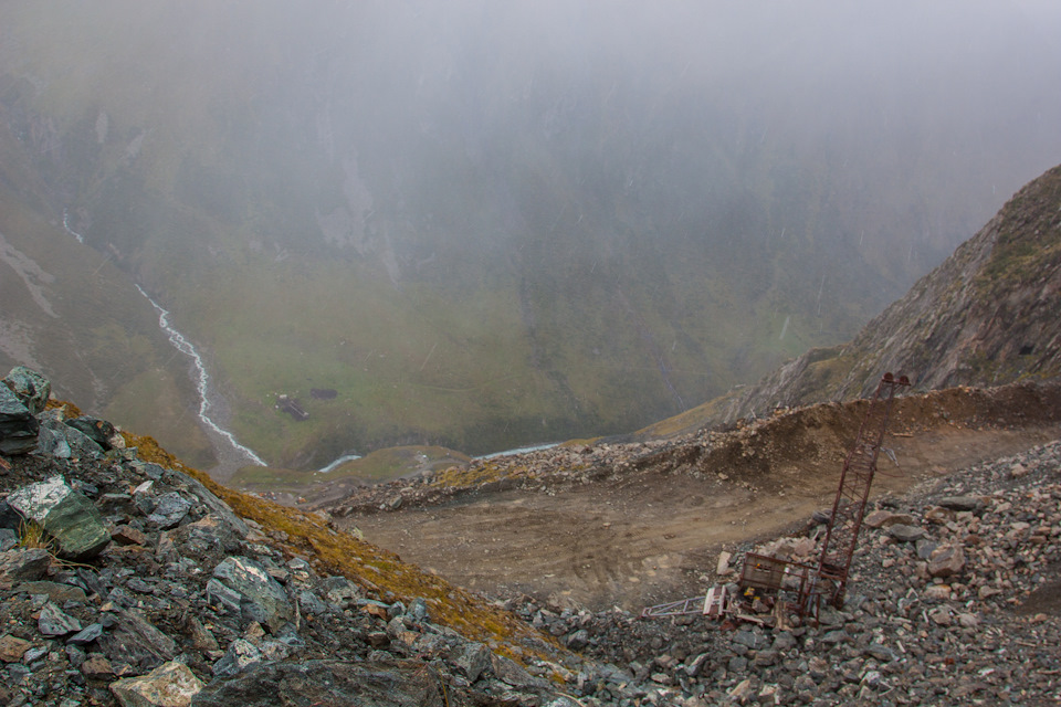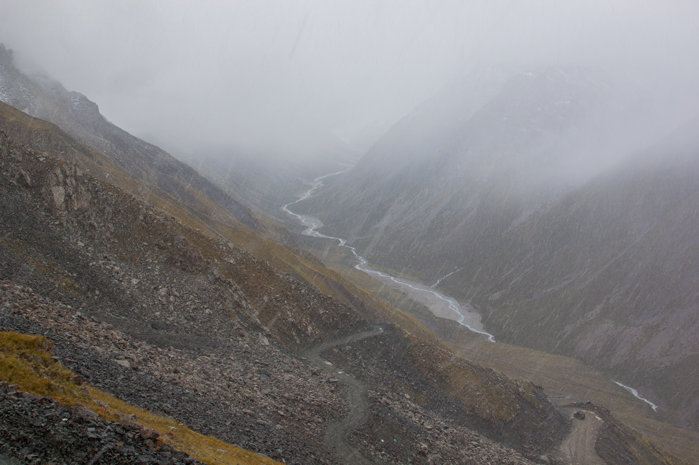 Шахта золотодобычи. Снег валит стеной. В Августе высота 3520 метров :)