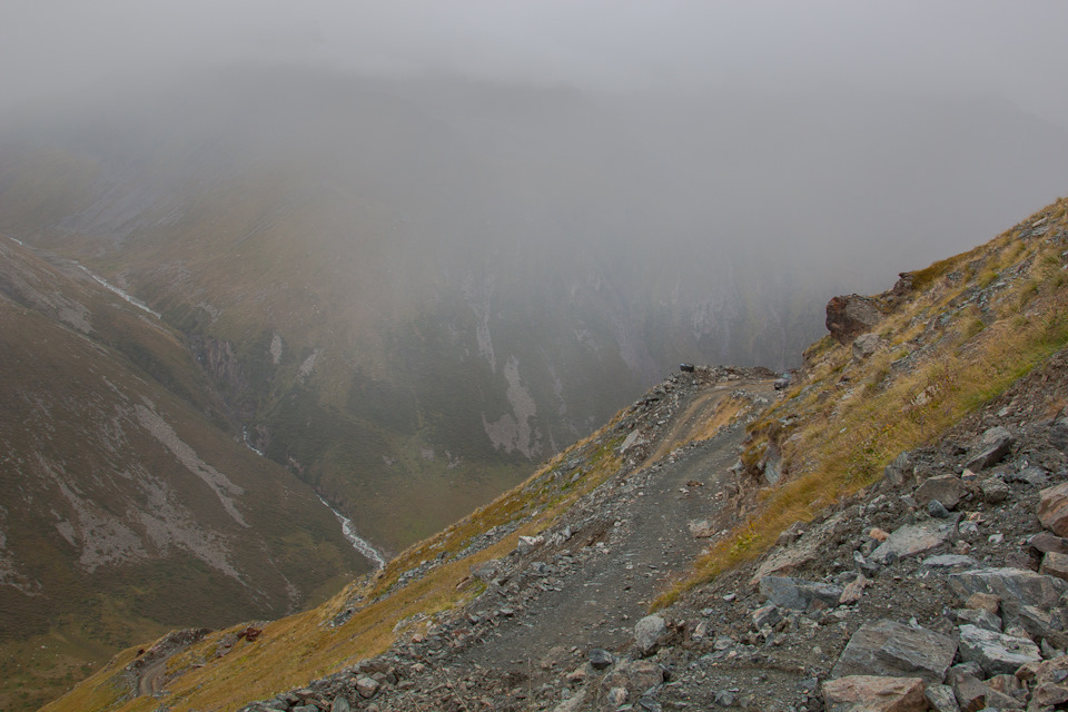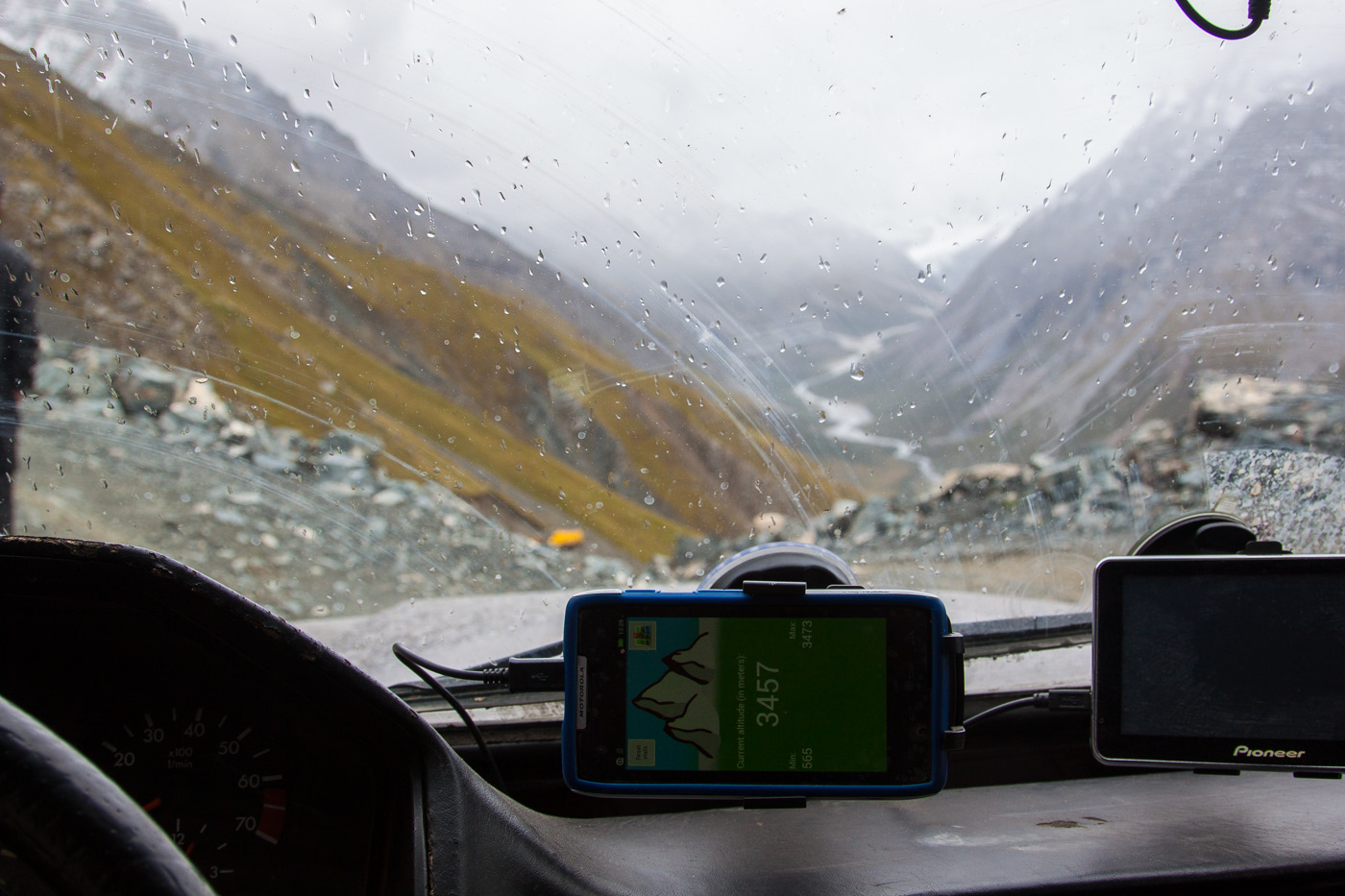 Дальше проехать не смог. Завалило без того узкую дорогу. Высота 3457 метров. В машине ехало 6 человек. Поднимался на 1-2 пониженной. Старенький слабенький бензиновйы моторчик. Тянул норма!