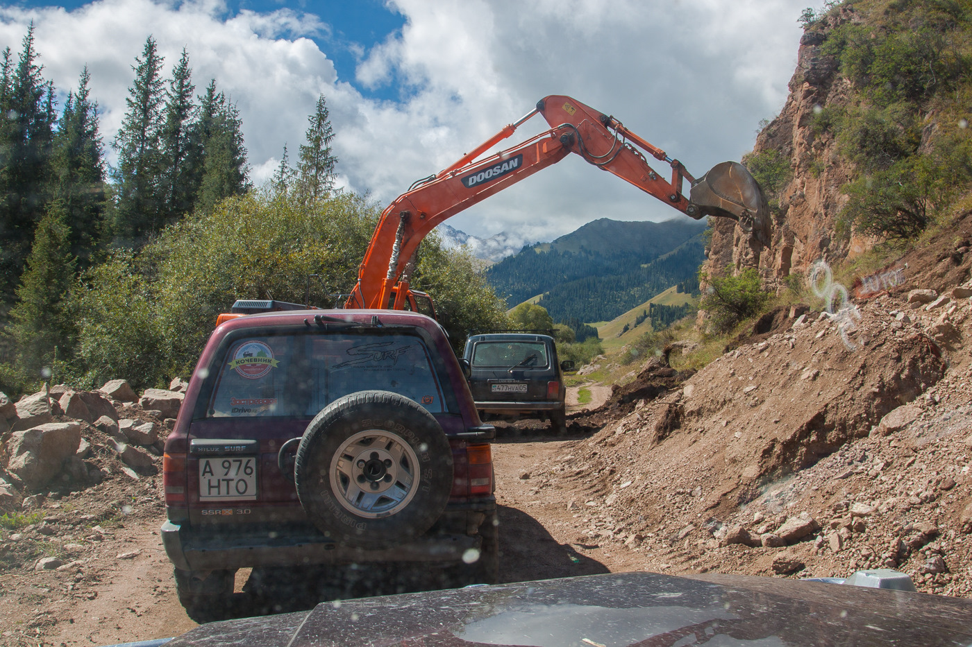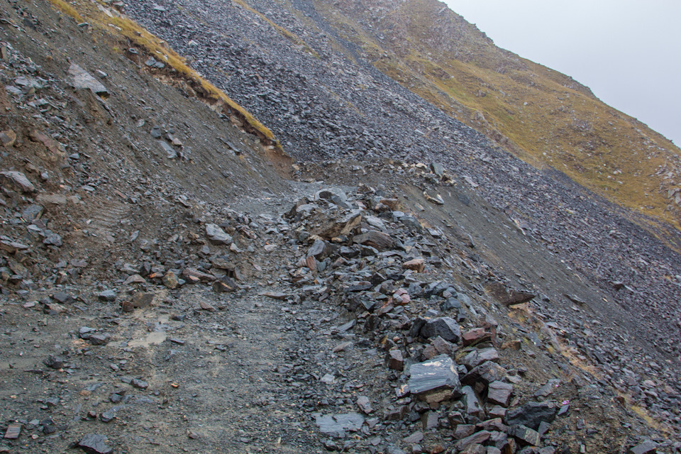 Сам завал. Дальше проехать очканул — тут стена горы а там обрыв. Пошли пешком.