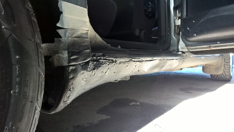 Еще летом в Июне 2015 карчером отрезал кусок не агдезионной резины с края порога, задняя часть. Сантиметров 15 в целом на правом пороге сам порог стал требовать ремонта…