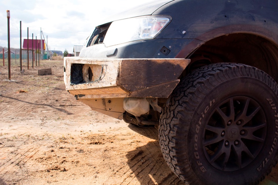 Надоело ремонтировать бампер после покатушек, и задумался я о силовом бампере. Но тяжелый ARB или не менее тяжелый от МШУ не очень хочется вешать на машину. Стеклопластик — самое то. Нашел человека, который был готов и мне помочь, и самому потренироваться. Вот что из этого получилось: