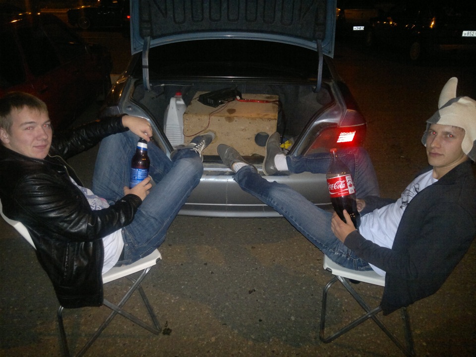 Было весело скажу я.особенно после разглядывания машин других драйвчан сидеть на складном стульчике закинув ноги на багажник попивать колу (Я теперь за ONLY трезвость за рулем) и чувствовать по кроссам вибрацию саба, ну и само собой вертеть головой стараясь не пропустить происходящие, но все же пропустил видео про звук, хотелось попасть в это видео с сабом ГДН75, головой и усилком Xplod в 600 сил так сказать, но да ладно ибо мой друг Женек тоже не попал, дальше были приколюхи, я всосав собрату по авто спалив да и так не особо живое сцепление, зато был доволен что он заставлял всех смотреть на его багажник с кем ехал (очень приятно — есть к чему стремится, но это в информации про авто), коцнутый проежающим на встречу авто, со мною в заезде с Meganом, извини не уберег, да и просто хорошее настроение и досуг.