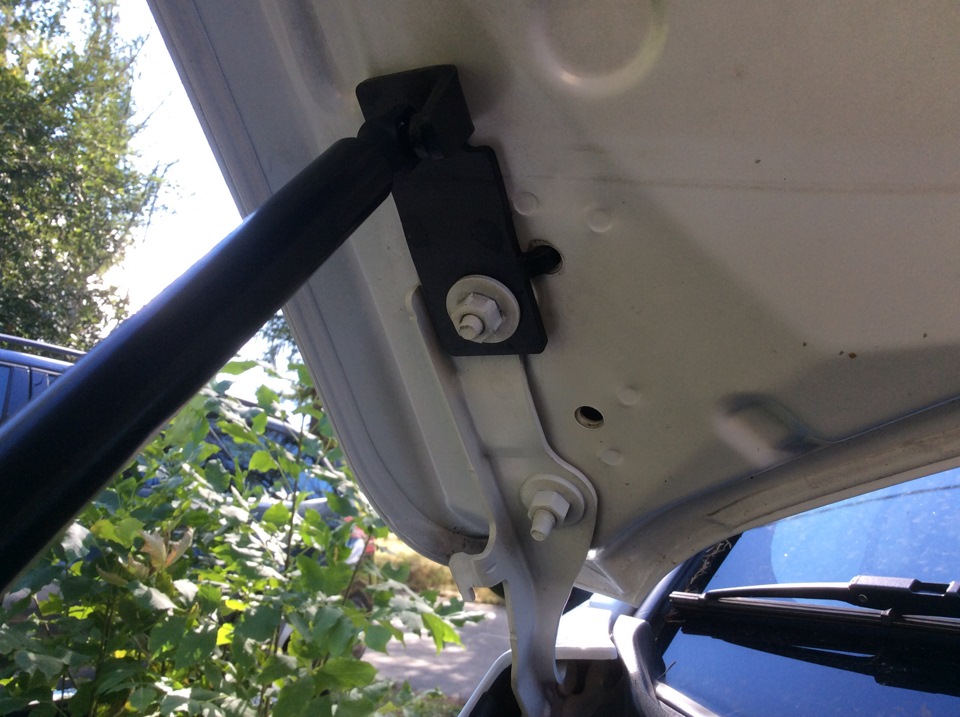 А ты крепления на капоте в верхние или в нижние дырки поставил? Сними пластиковые накладки и попробуй закрыть, должно все лечь нормально