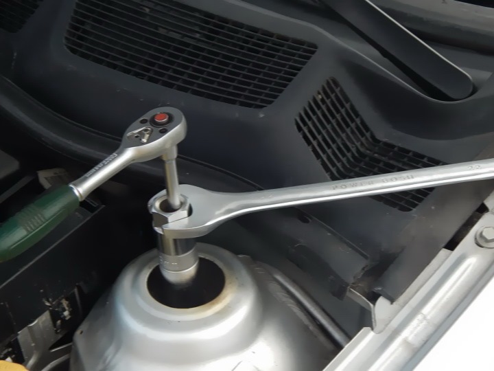 корпус опоры неплохо бы поменять, а то разваливаются они со временем, ржа. развал до полуградуса в пределах люфта болтов крепления стойки к кулаку — так что лучше проверить и поправить при необходимости. кривой накидной ключ как альтернатива всем головкам.