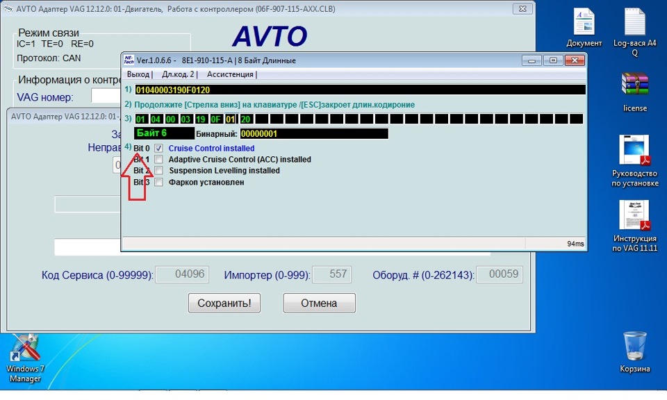 Вот так выглядит у меня в 6 байте, уже изначально было прописано 01. Но такого меню, где написано круиз контроль установлен нет. Может знаешь почему так?