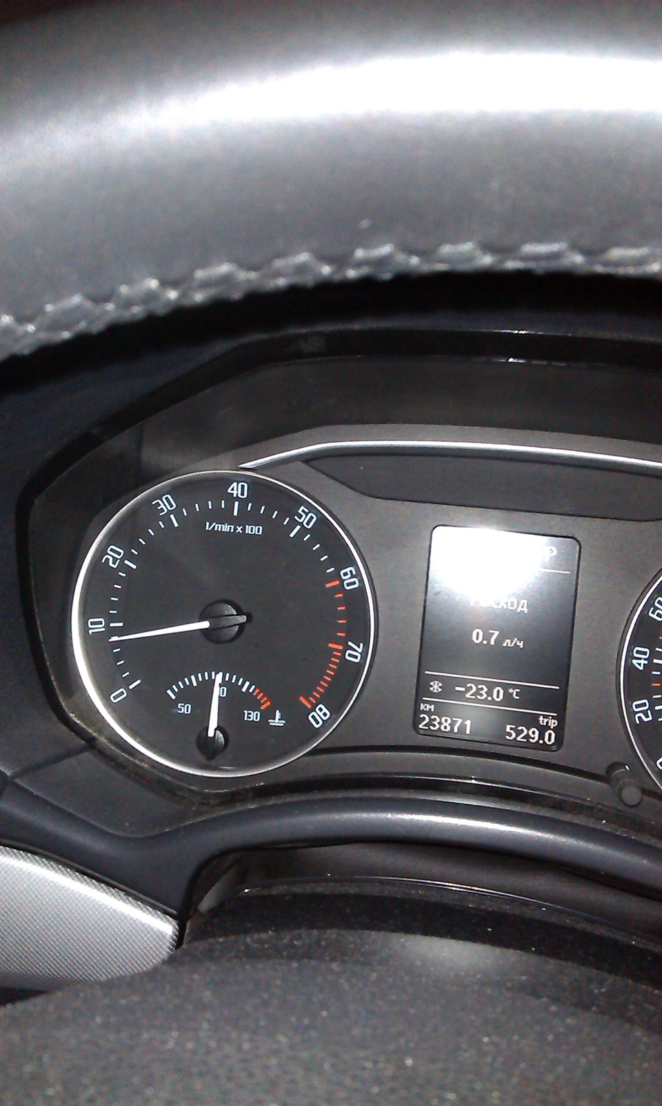 Копясь в фотках сделанных телефоном, нашел фотографию — сделанную через месяц после покупки машины. Я сфоткал расход на прогретой машине, чтобы не забыть потом.