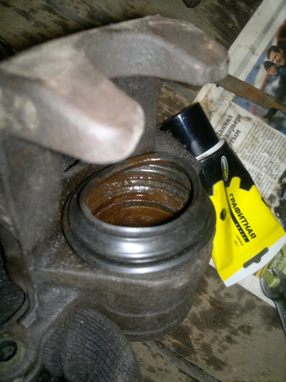 После ожидания все разобрал и снял ржавчину с поршней карщеткой а внутри немного наждаком прошелся, все промазал графиткой и поставил на место закрыв пыльниками.