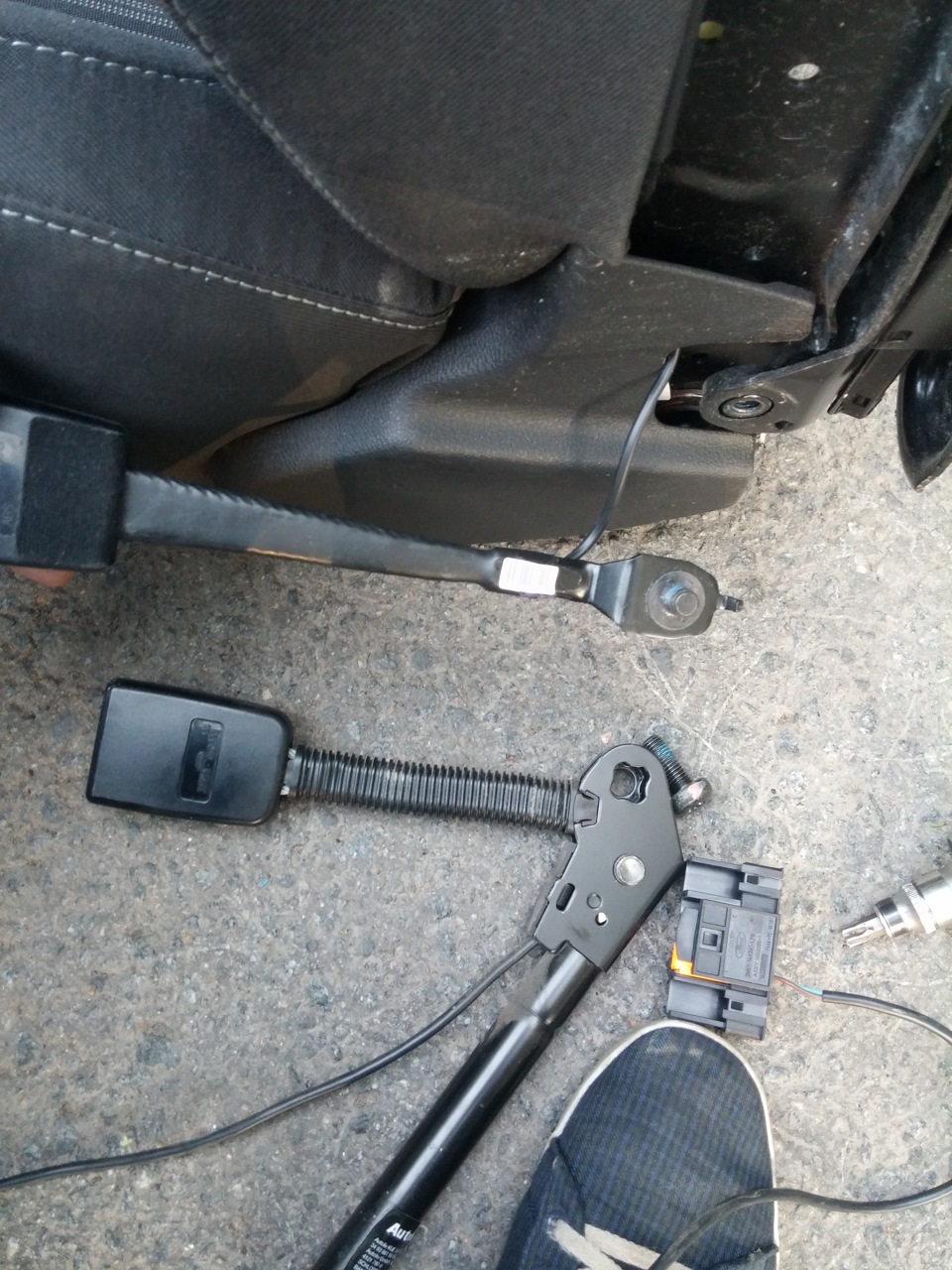 разъемы сидений я переставил со старых сидений за одно и защелку ремня поменял на старую с пиропатроном.