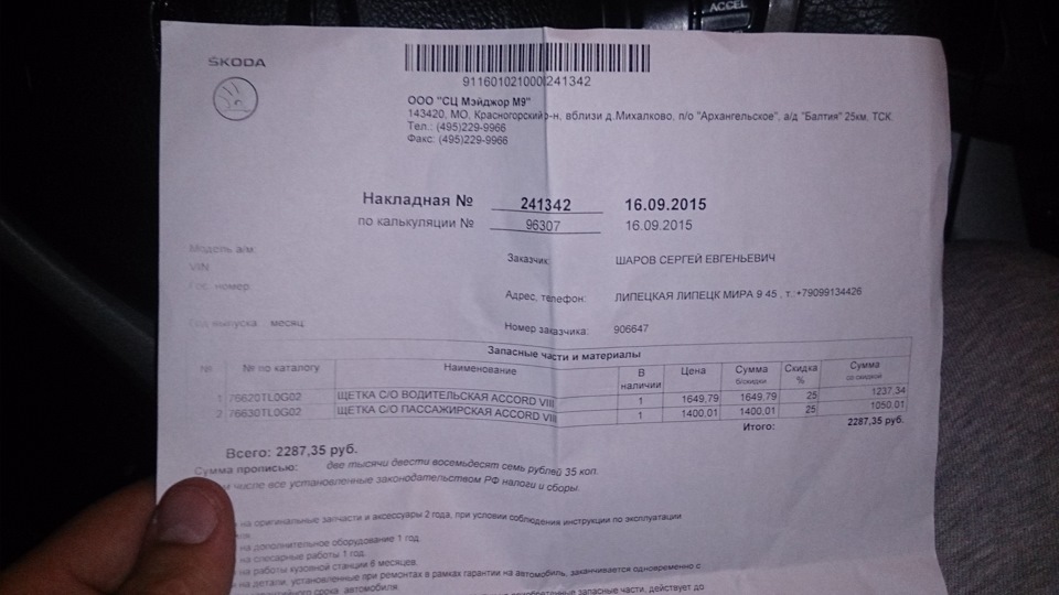 Сегодня купил оригинальные дворники, и крышку на бачок омывателя…