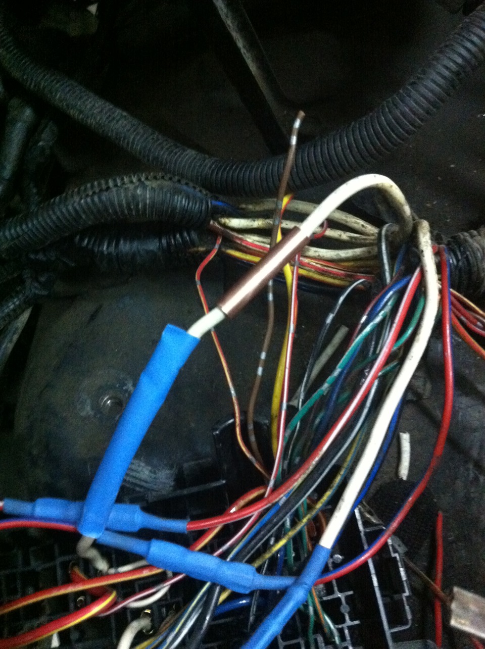 — вызвонил в моторной косе провода форсунок и датчика Холла, вывел хвосты из косы около крана печки и там срастил с газовой косой.
