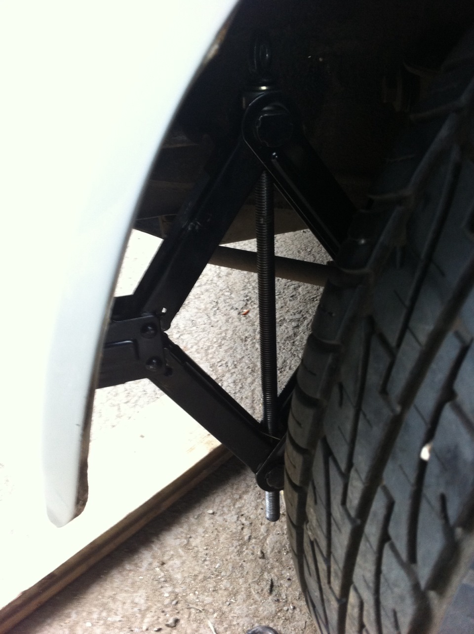 Так как моих сил было мало для того чтоб тянуть, я вставил домкрат и упер его в рычаг, и начал потихоньку крутить, в общем домкрат мне помог не плохо) вытянул я его хорошо, крыло щелкнуло, и со стороны уже выглядило намного ровнее.