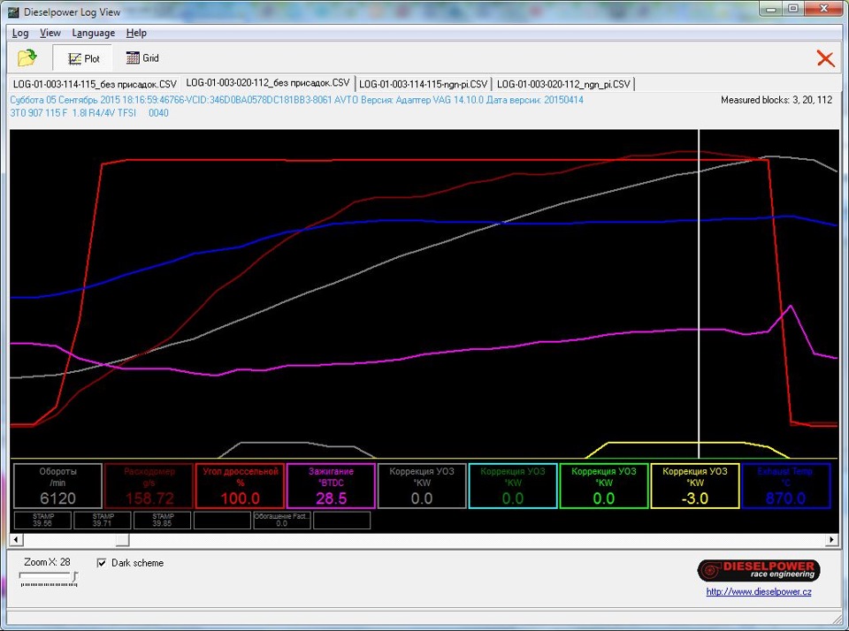 С начала снимал логи на чистом бензине, потом добавил PETROL IMPROVER, покатался и снял логи заново.