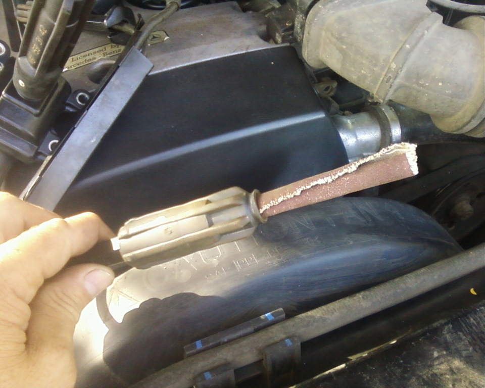Взял наждачную бумагу с мелким зерном, скрутил её в трубочку и зачистил все наконечники