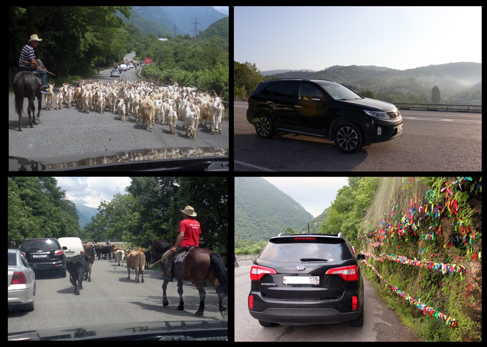 В Абхазии за рулем нужно быть всегда на чеку и смотреть по сторонам на все 360 градусов. Местные там ездят как хотят, правил для них не существует. Поворотники? Что это? Ремни безопасности никто и никогда не пристегивает — Джигиту не положено! Они могут пронестись на красный сигнал светофора, но тормознуть на трассе и пропустить пешика через дорогу, хотя пешеходником там и не пахло. Постоянно летают по серпантину и обгоняют по встречке, через сплошные. И это все при том, что прямая видимость дороги не более 50 метров. С парковкой там никто не парится, они могут кинуть машину прям посреди дороги, даже если всего 2 полосы в разных направлениях. А могут 2 машины остановится посреди дороги, и водилы через открытые окна авто 20 минут будут обсуждать "Как отлично вчера пошло вино, а сыр был никудышный"))). Очень модно ездить с открытым окном и оттуда хрипло на полную мощь басит музон. Причем, если у нас так ездят в основном молодежь, то там и старички дают жару.