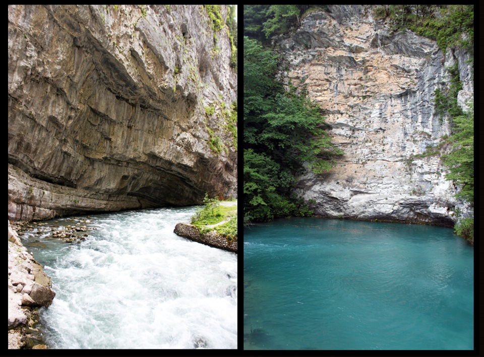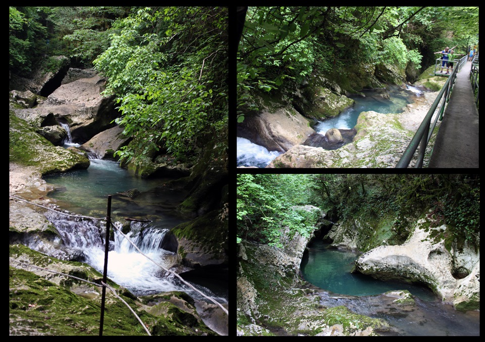 Когда дошли до конца, я перепрыгнул оградку и начал прыгать по камням к реке. А жена стояла наготове на мостике, дабы зафоткать меня на фоне дикого и изумительного пейзажа. Но в очередном прыжке, я подскальзываюсь и падаю аккурат на здоровый камень. Пытаюсь подняться, но опять падаю, и так раза 3. С трудом поднявшись и чуть не упав в холодную горную речку, я возвращаюсь к жене на мостик.