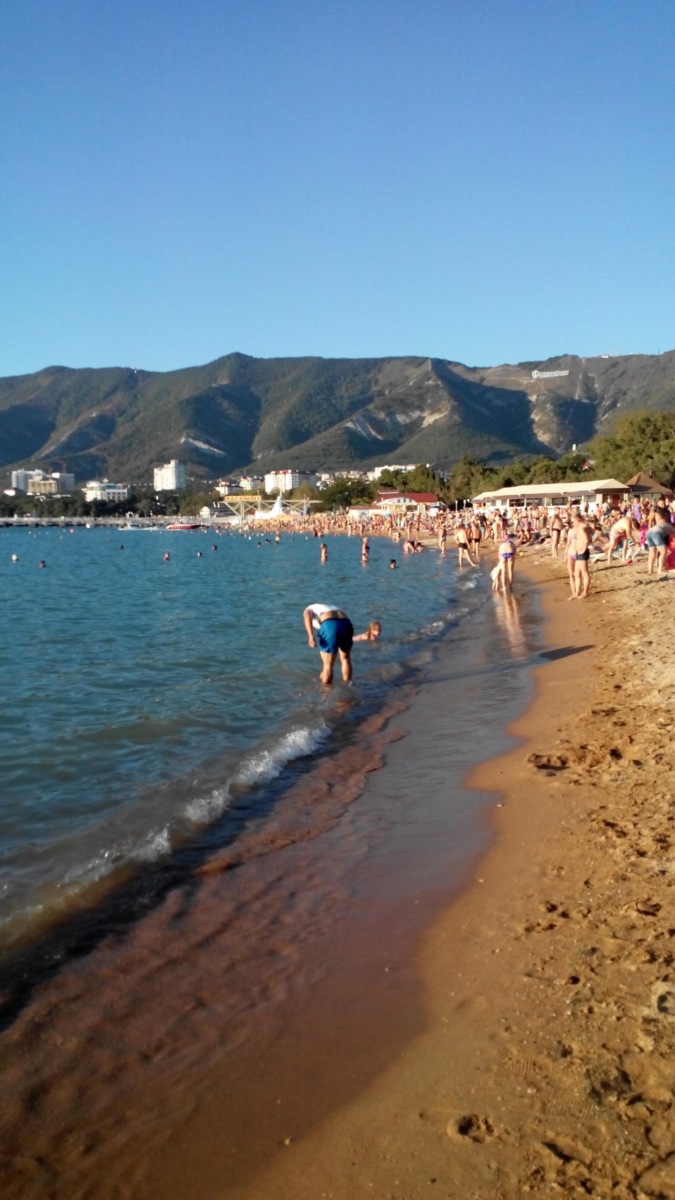 Приехали в Геленджик после обеда и отправились перекусить да море посмотреть. Как нам сказала хозяйка: "народу стало уже поменьше".