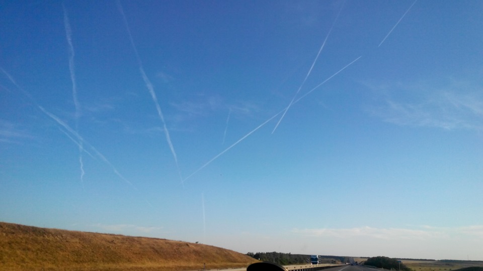 До М4 добрались без особых проблем, за исключением мягко говоря не очень хорошей дороги в Тамбовской области. Выехали на М4 и наблюдаем на небе полосы от самолетов