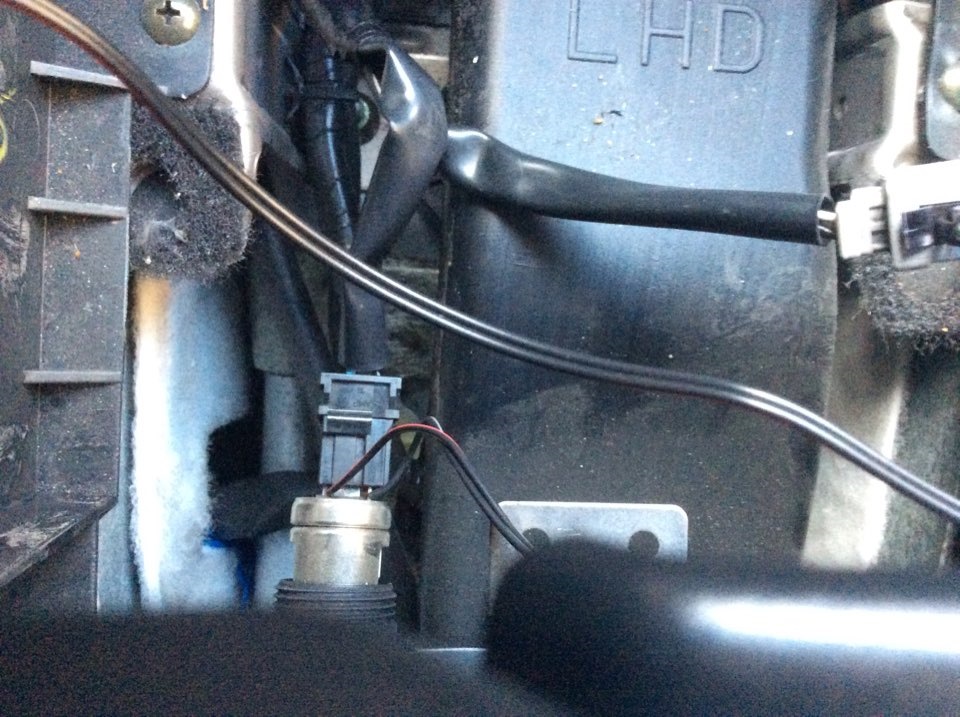 Подключение питания реле производим от прикуриватель, который в подлокотнике, но производим его через кнопку, подключаем минус напрямую, а плюс через кнопку.