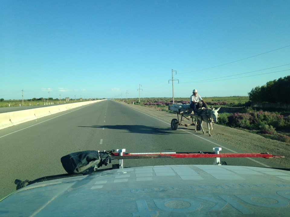 Заночевали в степи у трассы. Разбудил нас гудок Уаза и 5 погранцов, которые видать заметили с трассы и поспешили проверить у нас паспорта! Извинились за беспокойство и пожелали счастливого пути!