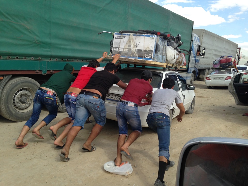 Но, даже проехав к таможне и оформив быстро пограничный въезд в Узбекистан, нам пришлось 2 часа стоять в ожидании досмотра двух легковых машин, которые шли перед нами.