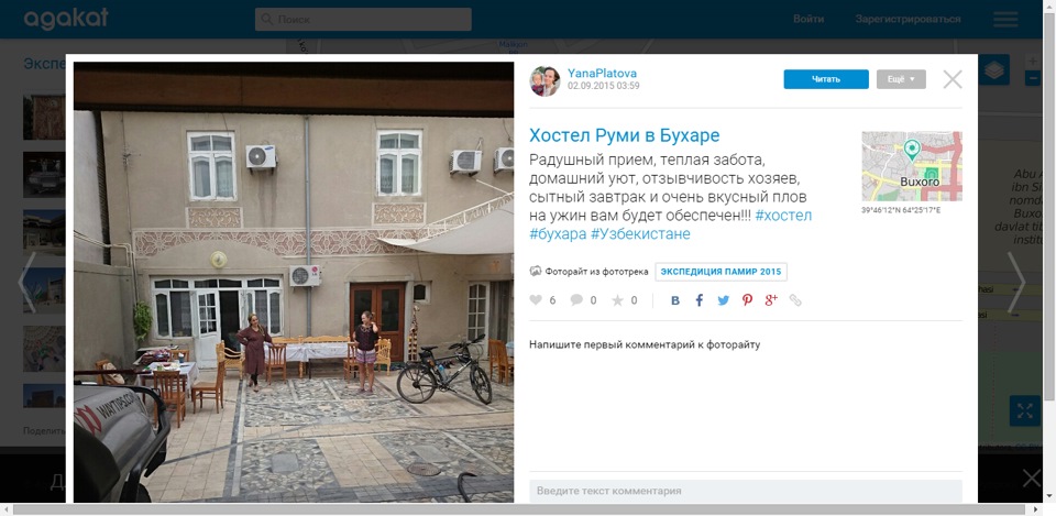 Если Вы ищете новые знакомства, если хотите почувствовать себя в Бухаре как дома, в уюте и тепле, как у бабушки в деревне — пожалуйста поезжайте в Руми. Резерв можно сделать через все сайты по бронированию жилья.