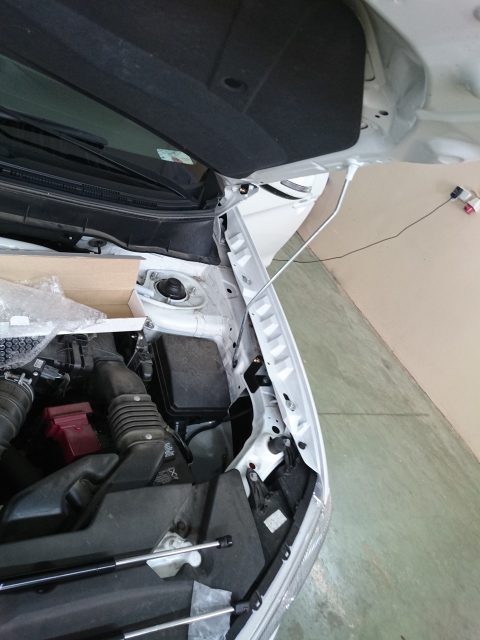 Поставил самостоятельно за 10 минут, кочергу оставил. Очень боялся, что угол капота начнет выпирать, как у знакомого на KIA Sportage
