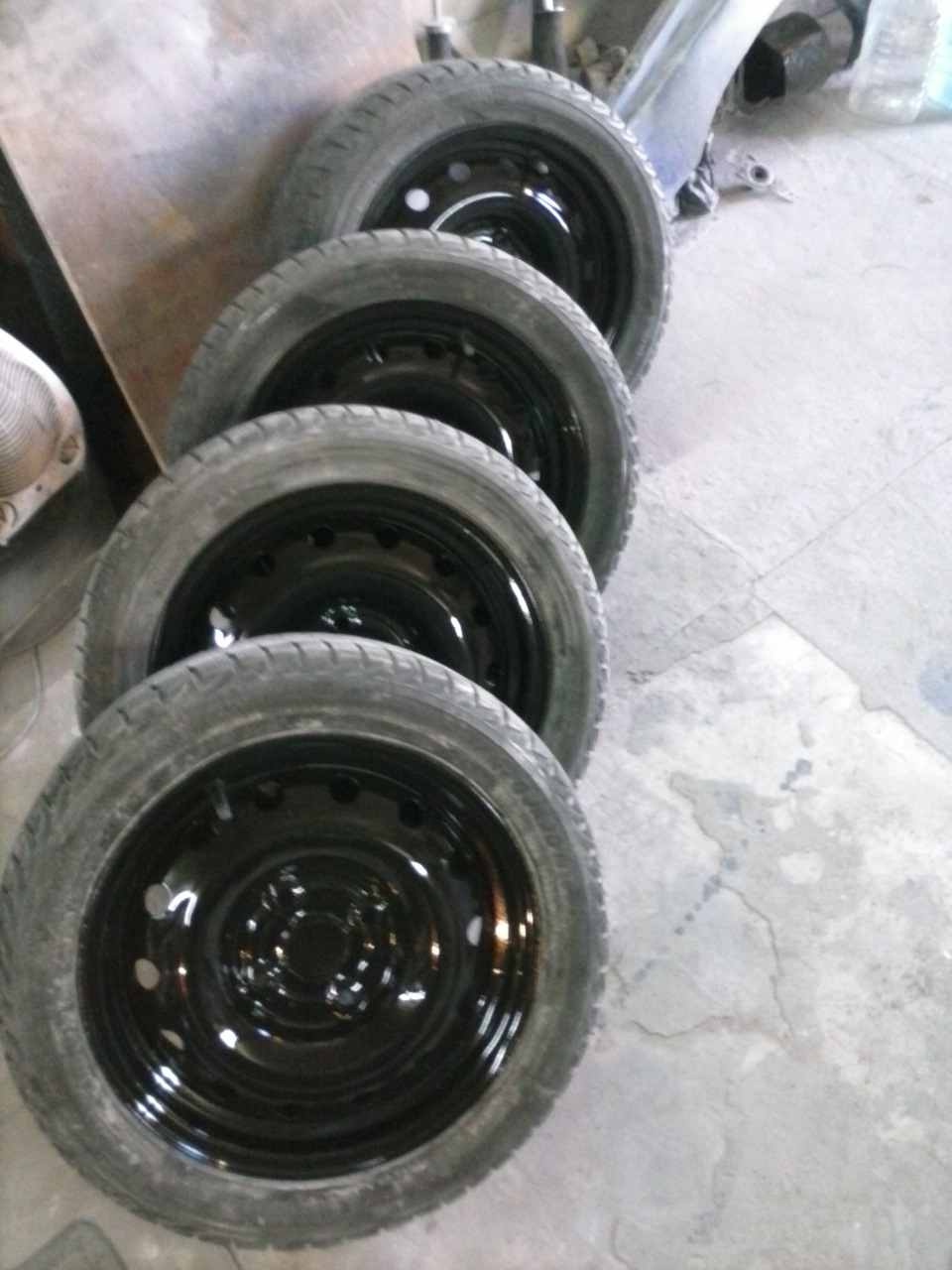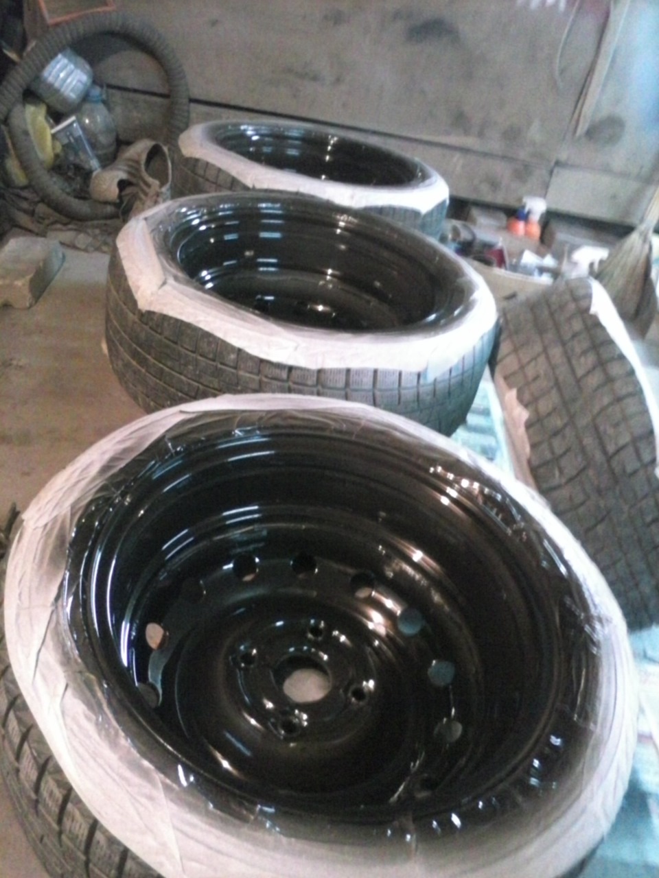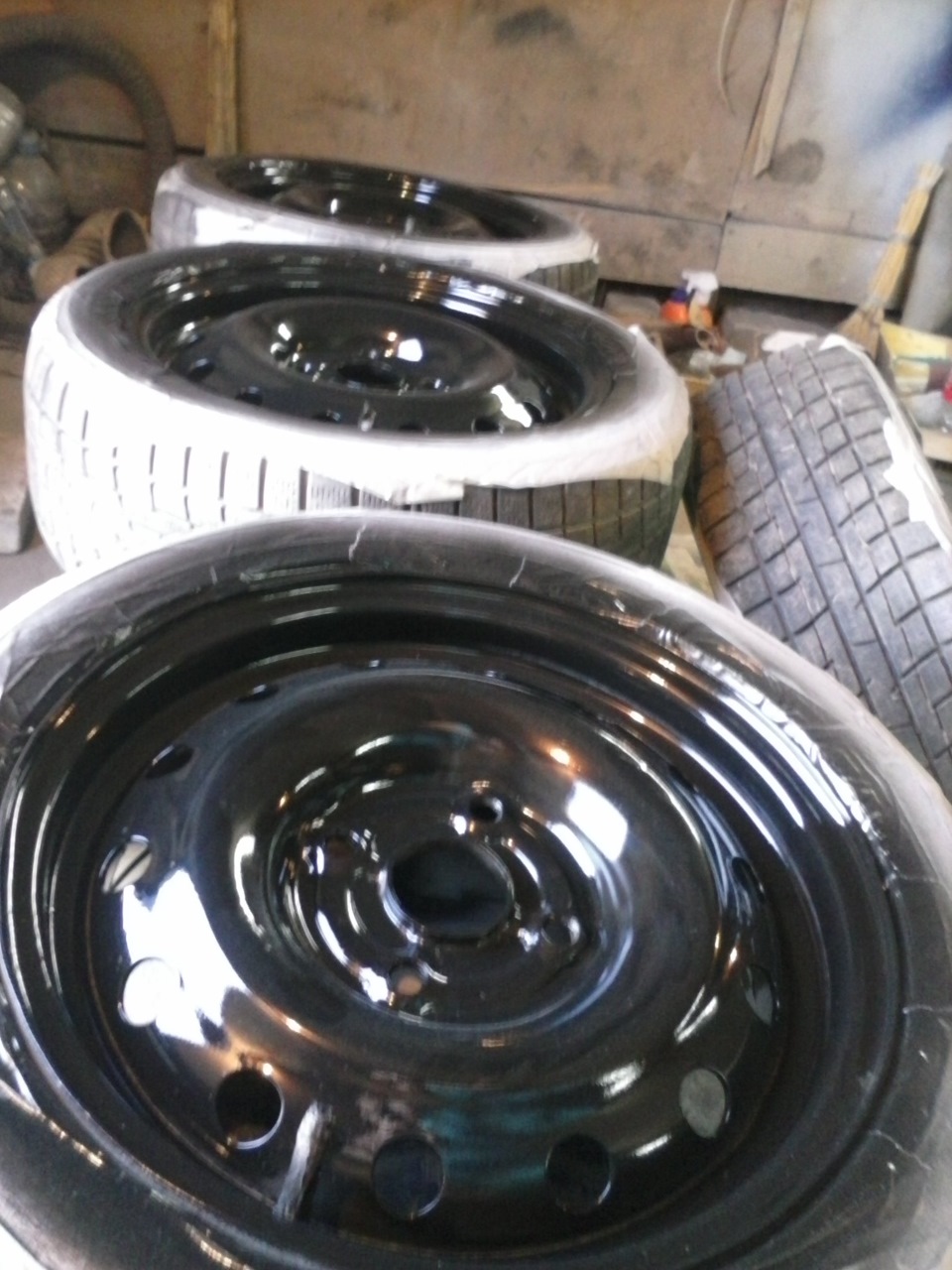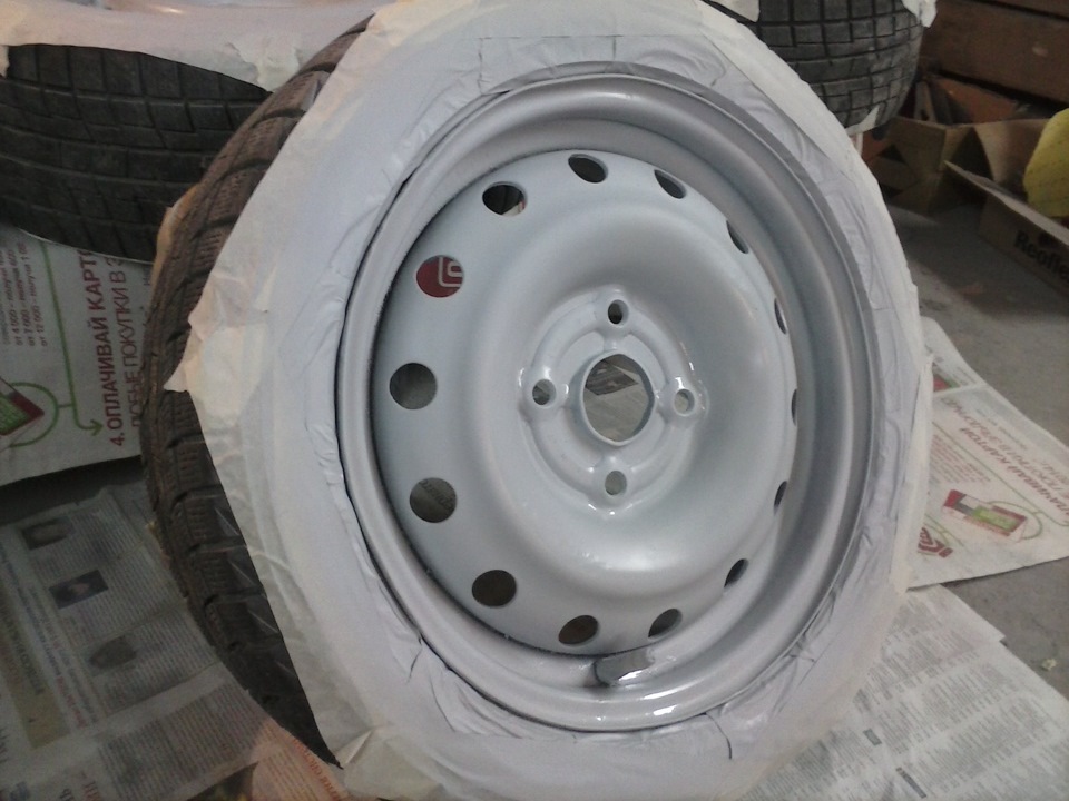 Давно собирался покрасить любимой на Лачети зимние штамповки. Диски были в плачевном состоянии. Все ржавые и гнутые. Пришлось катать 3 из 4-х дисков.