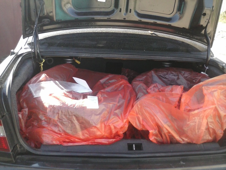 Так же решил приобрести за 90р на Юлмарте мешки для колес. Зря не поверил отзывам. На фото видно, что мешки для колес прекрасно просвечиваются, не о какой прочности говорить не приходится. Красная цена таким мешкам 20р.