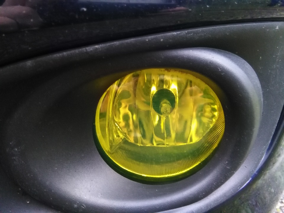 Желтая пленка периодически чернела от нагрева и приходилось переклеивать пленку. В общем нашел туманки с желтыми стеклами.
