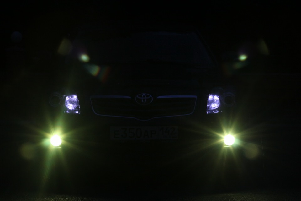 Хотел поставить ксенон 3000К Sho-me dark yellow, не успел заказать — последние забрали, по случаю пришлось воспользоваться таким вариантом как обтянуть пленкой (в два слоя), в туманках установлен ксенон 6000К — был при покупке. Cчитаю что туманки должны светить желтым в дождь и туман куда приятнее ехать, да белый свет красиво, но хорошая видимость дороги куда лучше. Знаю, что ксенон в туманках это ЗЛО, включаю исключительно днем в качестве ходовых дабы поберечь отражатель в фарах или в отсутствии встречной машины. В планах настроить ксенон в туманках, чтобы избежать ослепления встречного движения, есть по этому поводу мысли, если что получится обязательно появится запись. Пленкой обтянул уже давно, ни намека на выгорание.