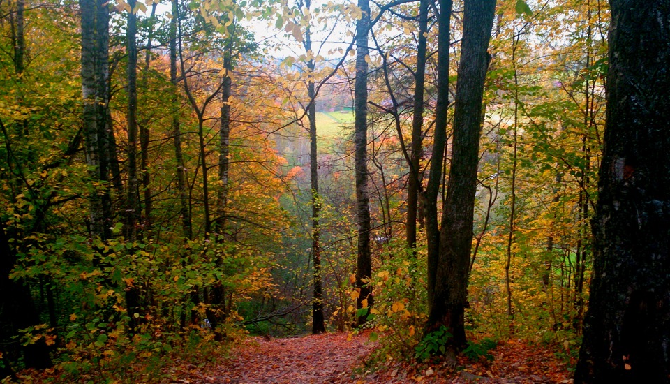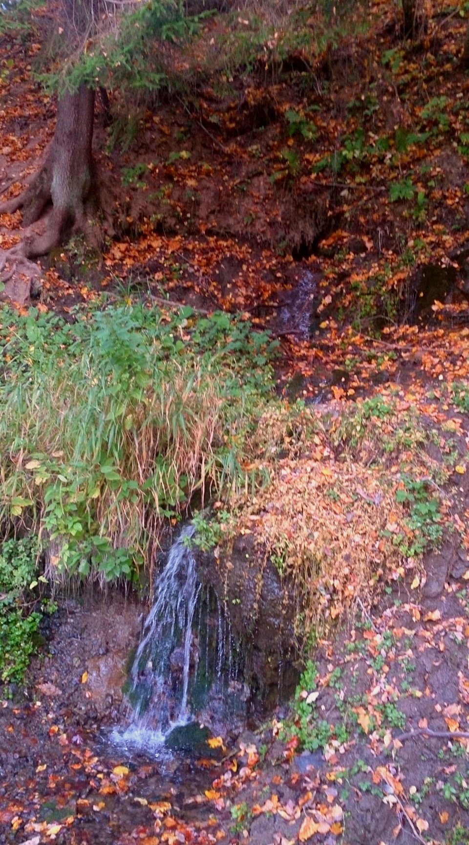 Осенью там оказалось безумно красиво. Наверное, летом там тоже красиво, но осенью просто невероятно! Мы очень удивились, когда встретили группу людей в халатах. Оказалось, что они там ныряют в купели, наполняемые из источника.