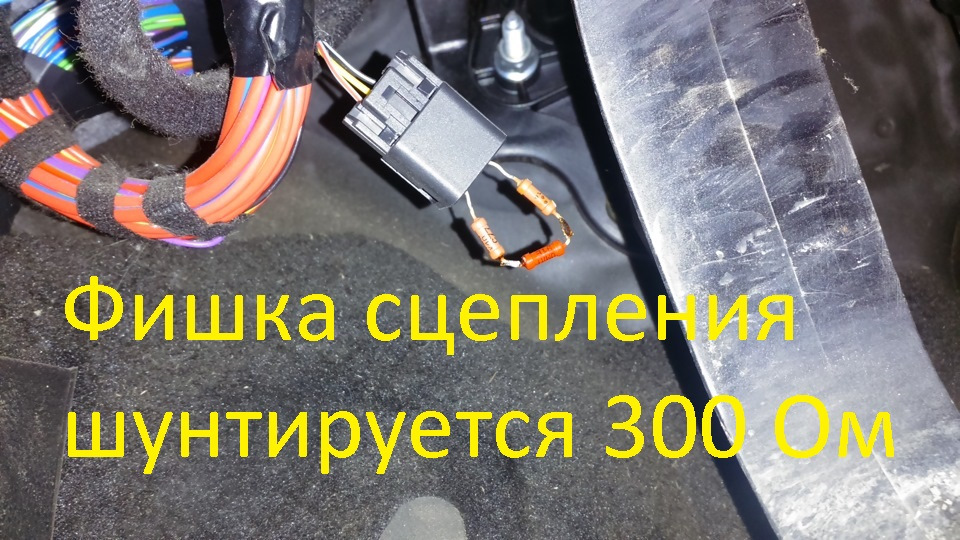— Педаль сцепления шунтируется подключением сопротивления в 300 Ом (желтый и черный с серой полосой провода на фишке педали сцепы)