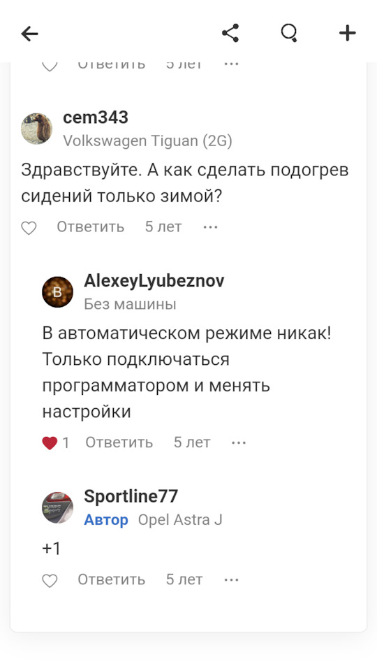 Авто-подогрев включается по определенному алгоритму при температуре ниже 8°С. Время работы и уровень подогрева определяется забортной температурой и температурой салона. Проще говоря, автоматика просто подогревает вам сиденье, не создавая дискомфорта.