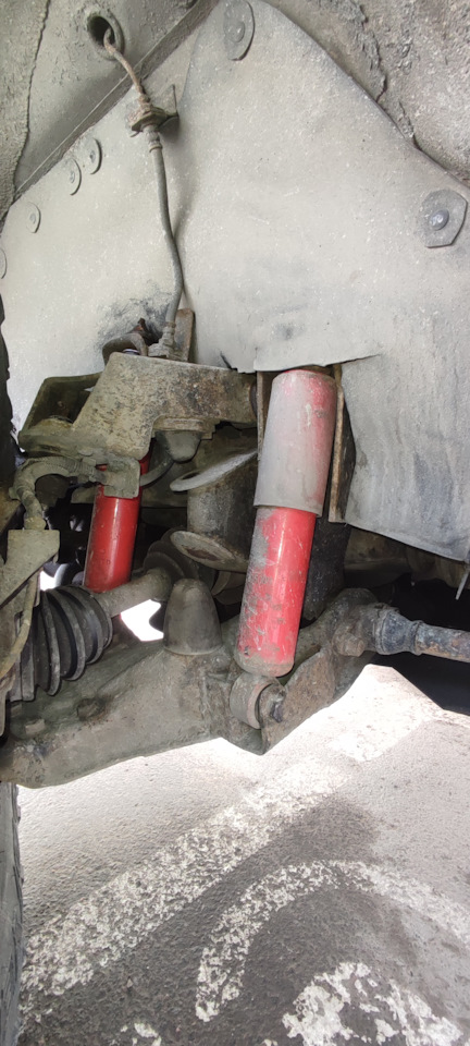 Правда, оборвал в горах шток одного из задних. С моим лифтом при вывешивании колеса удар получается.