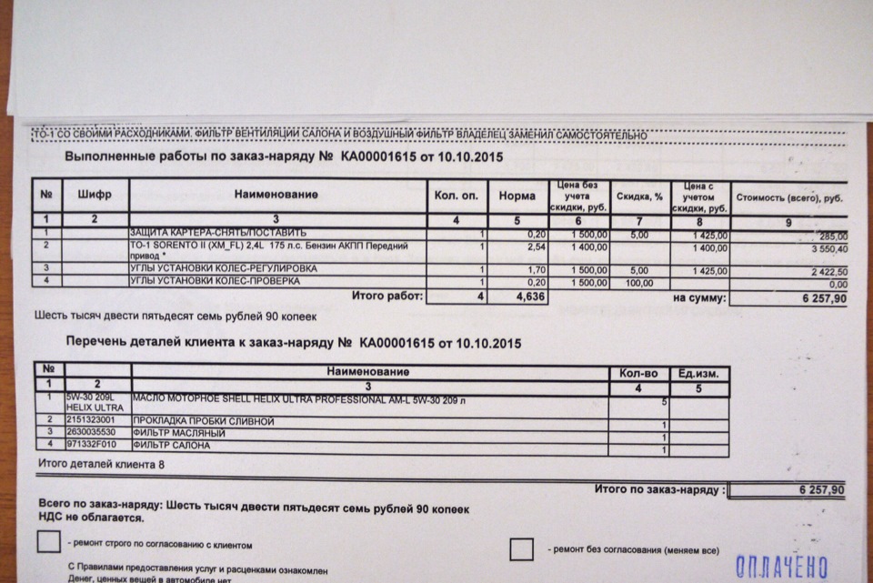 А что теперь, развал сделали это точно. Пришел домой, подключил Видеорегистратор к телику и просмотрел всё, что они делали. Масло слава богу залили, моё с канистры которое я им привёз. А саму проверку развала я не увидел)) вот почему за проверку ничего и не взяли. Но всё остальное выполнили и в том числе развал.