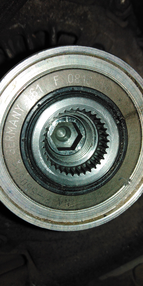 Еще в середине лета заметил что при заведенном двигателе на холостых оборотах появился тарахтящий звук(так называемое дизеление) и довольно сильная вибрация приводного ремня. Когда снимал для ревизии и замены щеток генератор, обнаружил что заклинила обгонная муфта генератора. В оригинале стоит муфта INA 510082510, но цена у нее кусачая. Подумал и решил все-таки попробовать самый бюджетный вариант муфту PATRON P5017810