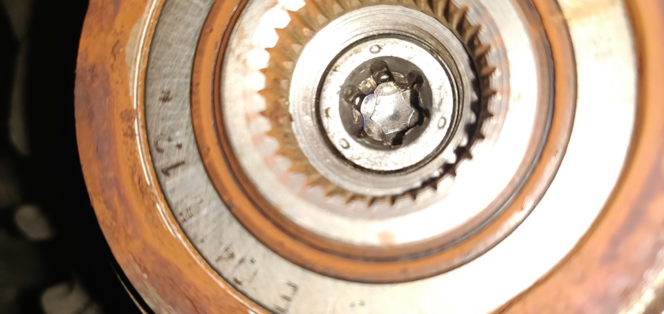 Вставил ключ в муфту и вал генератора приложил усилие… и хрен там. Ключ начал скручиваться, а муфта на месте. Побоялся сломать чужой инструмент. Ключ вернул, а генератор поставил на место. Ездил так еще пару недель пока не выдался свободный денек и появилась возможность поизвращаться над муфтой. Приехал в гараж снял опять генератор, взял болгарку с отрезным кругом и приступил к пыткам обгонной муфты. Только перед этим обмотал генератор упаковочной пленкой для защиты от образивной пыли.