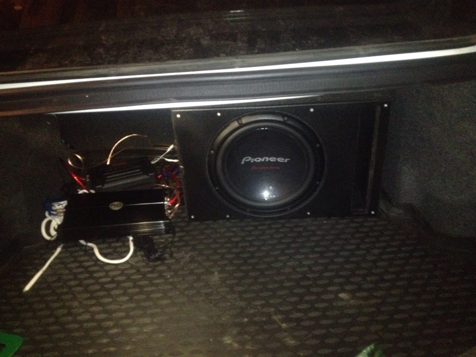 Саб установлен несколько недель назад. Пионер, номинал 400 ватт, Макс 1200, 2 Ома. Саб очень музыкальный, давит отлично! Бас не слышится, а больше чувствуется телом) В отличие от всяких Мистери и т.д., которые только гудят. Усилитель одноканальный, DLS. + фотка усилителя для фронта, пионер. Пока все не окончательно прикручено, времени не было. На днях облагорожу)