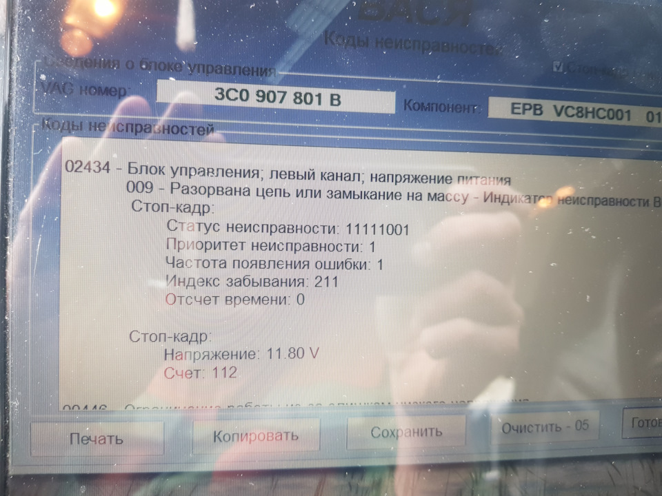 Шнурка пока нет, как говорится начал с кнопки.Снимал через левую заглушку где предохранители.Там все просто.Все почистив и установив на место-результат тот же, дело не в кнопке.Следующая фишка и контакт мотора, тоже мимо!Подъехал человек с шнуром, было пару ошибок, основная 02432 и не стирается!А это нам говорит нет электро питания на левый мотор!Нарыл полезной инфы на форуме Б6 ых если ошибка с Субкодом 011-значит плохой контакт в фишке мотора, если 012- обрыв эл.цепи! 012 ЭТО СТОПРОЦЕНТНЫЙ КЛИН МОТОРЧИКА!Перебирал оба мотора по весне-потек суппорт, все смазал, выдул, вычистил, все крутилось просто великолепно!Поэтому и думал что клина мотор точно не может словить!А вот херушки!Сняв левый мотор понял что редуктор заклинил!Кое как разработал его, отмыл в растворителе и искупал в горячем масле!)Корпус паял металлической сеткой, по шву прошелся герметом!Понял еще один просчет немецких инженеров, при установке мотора на суппорт, он садится на площадку с отверстием под вал, роль уплотнителя там играет резиновое кольцо!Именно через это место соединения попадает вода, так как разобрав свой, там было немного влаги!Поэтому это место еще промазал герметиком.Еще раз повторюсь, корпус был идеально спаян, а шов замазан герметиком!Так что побороть эту болезнь можно только с помощью замены подшипников, их там вроде 3!А мера разобрал, почистил, смазал собрал -временная.Сейчас хочу найти второй редуктор попробовать его разобрать, хочу замутить что-то типо съемника шестеренок, а так там ничего сложного нет! Свой мотор собрал, все крутится отлично, поставил на ручник-моторы пожужжали, снял с него и все ошибки пропали!При след.диагностике их затеру.А вот еще что-если у вас ошибка 02432 или 02433 не пытайтесь прозвонить фишку моторчика!Машина умная, и чтобы не спалить мотор, просто не дает на определенную сторону напряжение, в итоге реакции конторольки на нажатие кнопки ручника просто НЕТ!Все дело в заклинившем моторе!Инфа не новая, так что сильно не пинайте!Мож кому пригодится!Всем Удачи!Посмотрим сколько проработает мотор сейчас))))Буду заказывать шнур))