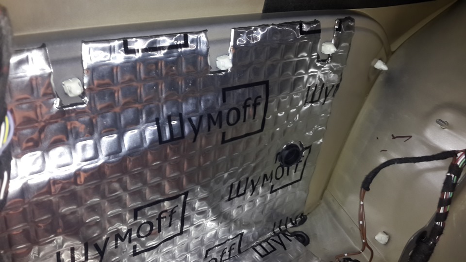 Внутренние полости арок, как наиболее вибронагруженные, закатываем в М4 столько, куда сможем подлезть руками. Вырезаем необходимые отверстия, под все штатные заглушки/клипсы и тп.