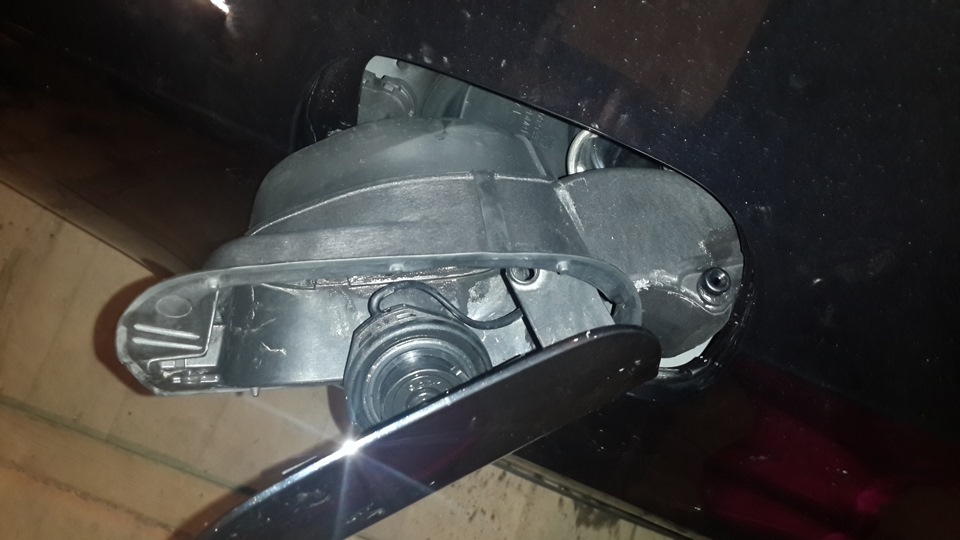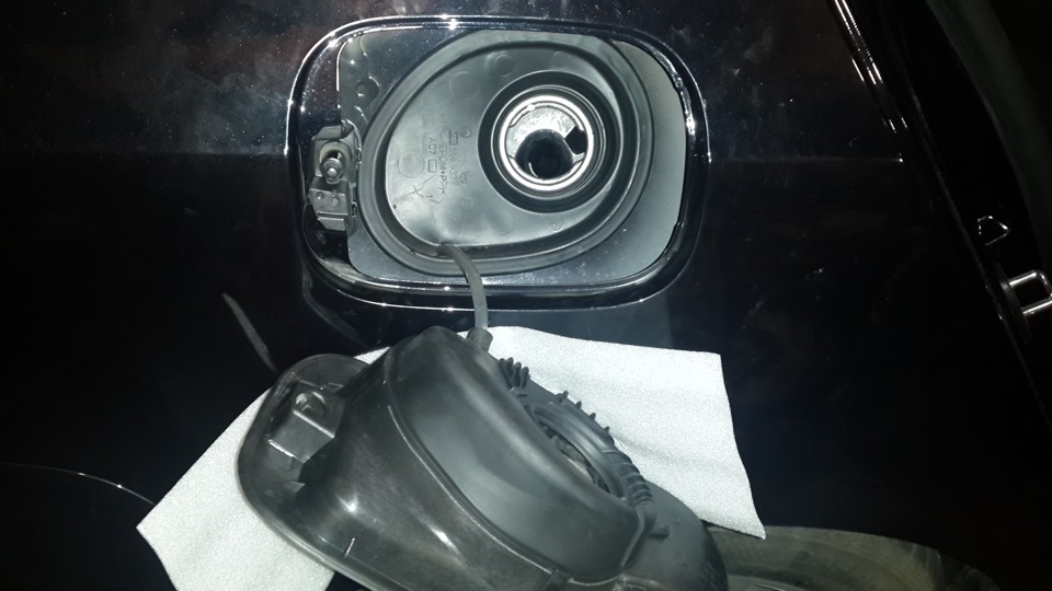 Ну понеслась.Не обошлось, впрочем как обычно, без конфуза. При отстегивании пластиковой накладки, белого треугольника(владельцы поймут), клипса осталась в кузове, и при попытке вытащить ее оттуда плоскогубцами, она с.ка отстрельнула, во внутреннюю полость крыла. На этом весь вечерний энтузиазм разбился о кусок жести. После получасовых, безрезультатных, попыток подцепить магнитом, через тех. отверстия, я уже начал представлять, как она мне будет сверлить мозг, брякая на кочках. Реально подумал по звуку, что она сбрякала куда-то в порог. Других вариантов как попробовать снять горловину, больше не осталось. Разбирал без инструкции, не думал, что выдвинуть можно только в сборе со всей конструкцией. Откручиваем винт, вытягиваем трубку, тянем все влево, подкладываем со стороны лючка поролон, т.к при движении неизбежен контакт с кузовом.