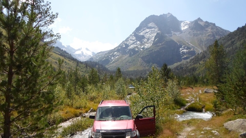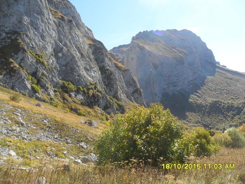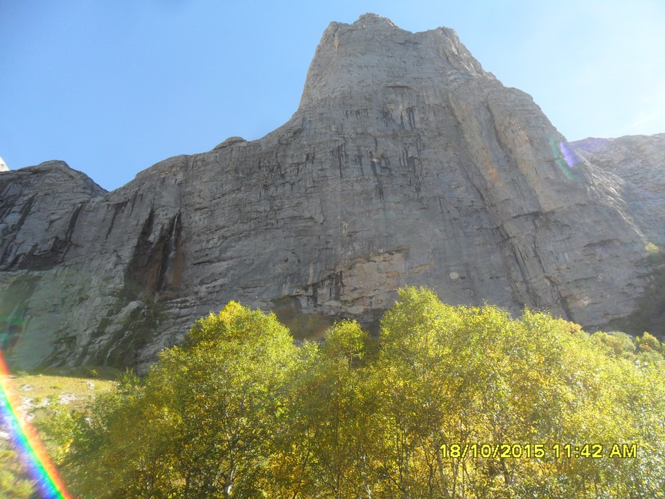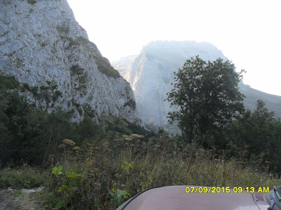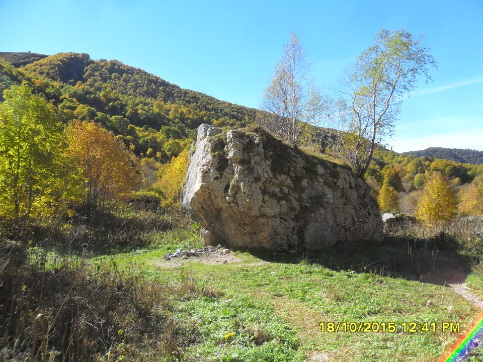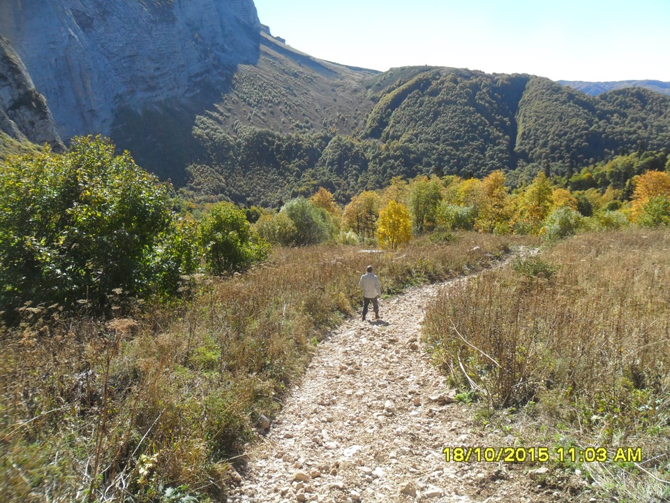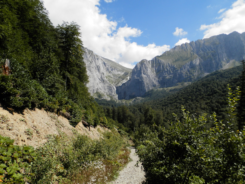 Будет крутой спуск и брод через речку, потом ещё круче подъём и далее дорога выведет сама к скалам.
