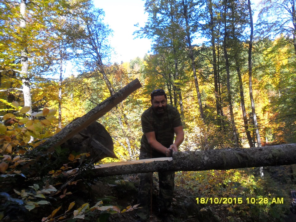 Пришлось пилить бревно, не проходил патр под ним.