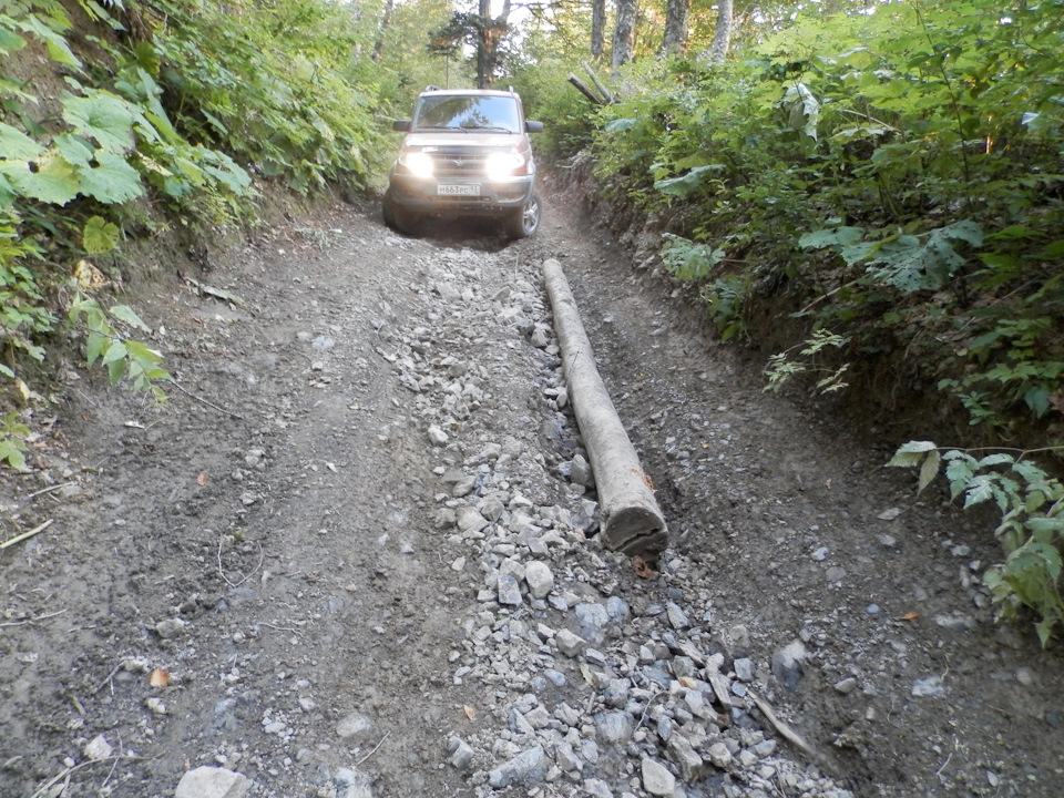 Очень узкая дорожка, по бокам крупные камни, от четверти куба, машина может просто не пролезть.