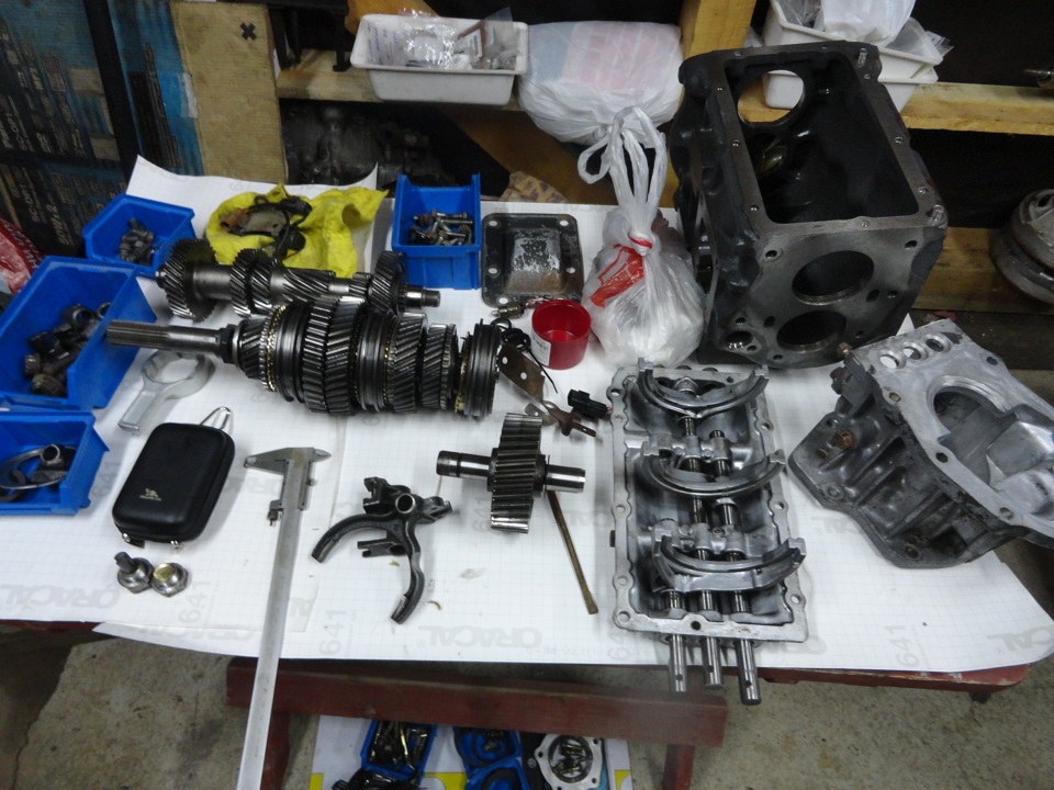 Дальше фото моего "трансмиссионного марафона". Одновременно разобрана мкпп, которая ждёт некоторых запчастей. И 2-е раздатки, сс акпп от п2 и парт тайм, из которых будет собрана супер селект механика для спорта.