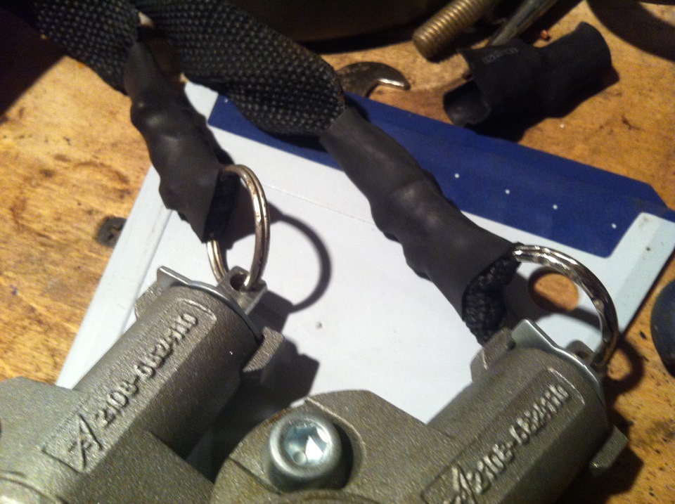 Далее приделал шнурки к замкам чтобы это все работало и затянул медной проволокой, и обжал еще термоусадкой для безболезненного прохода сквозь железо полки, фоток отверстия под шнурок к сожалению не сделал