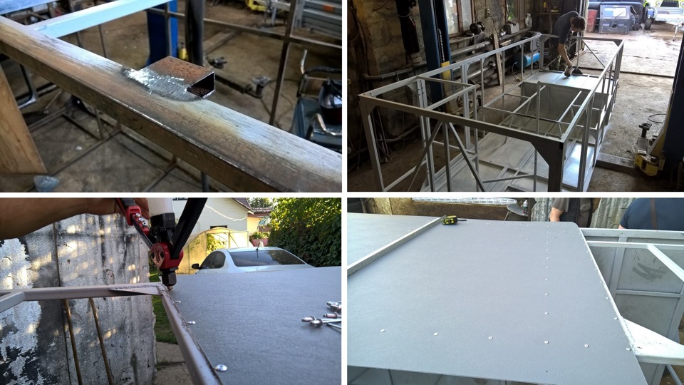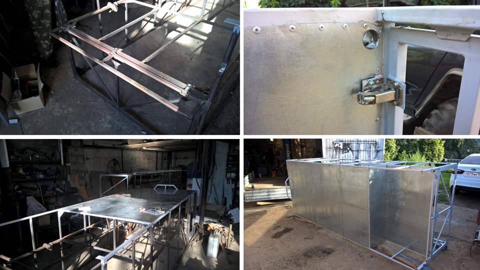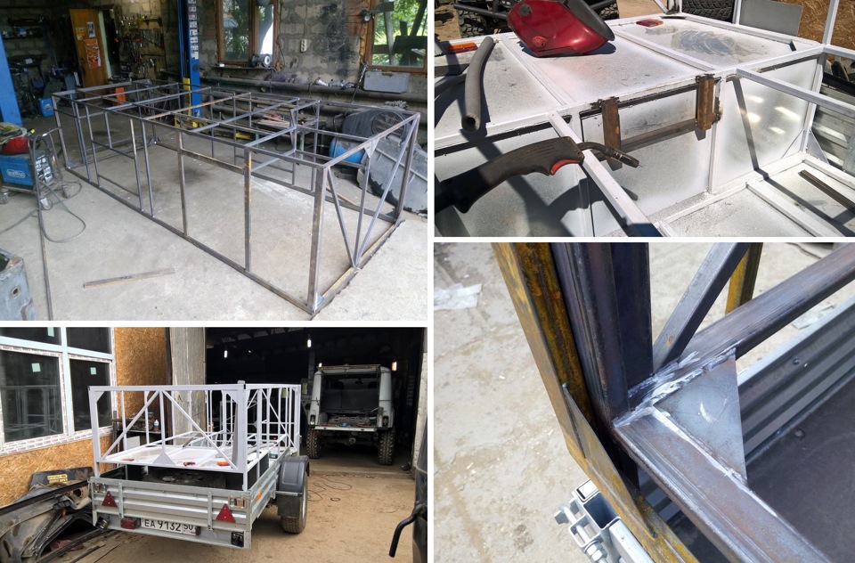 Тут если подумать, можно попробовать заменить трубы на оцинкованый профиль, и полностью собрирать на клепках. Будки на грузовых авто клепаные, и ни че нормально ходят. Рама-ферма там кажется есть, но по-моему она на уголках, а не на трубах собрана, но точно не помню…