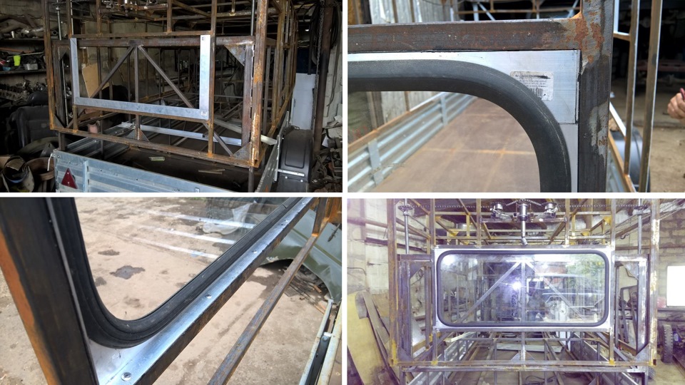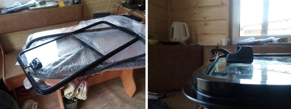На боковины были установлены раздвижные стекла от буханки приобретенные у … . А на заднюю стенку было установлено на алюминиевом уголке, заднее стекло от хантера.